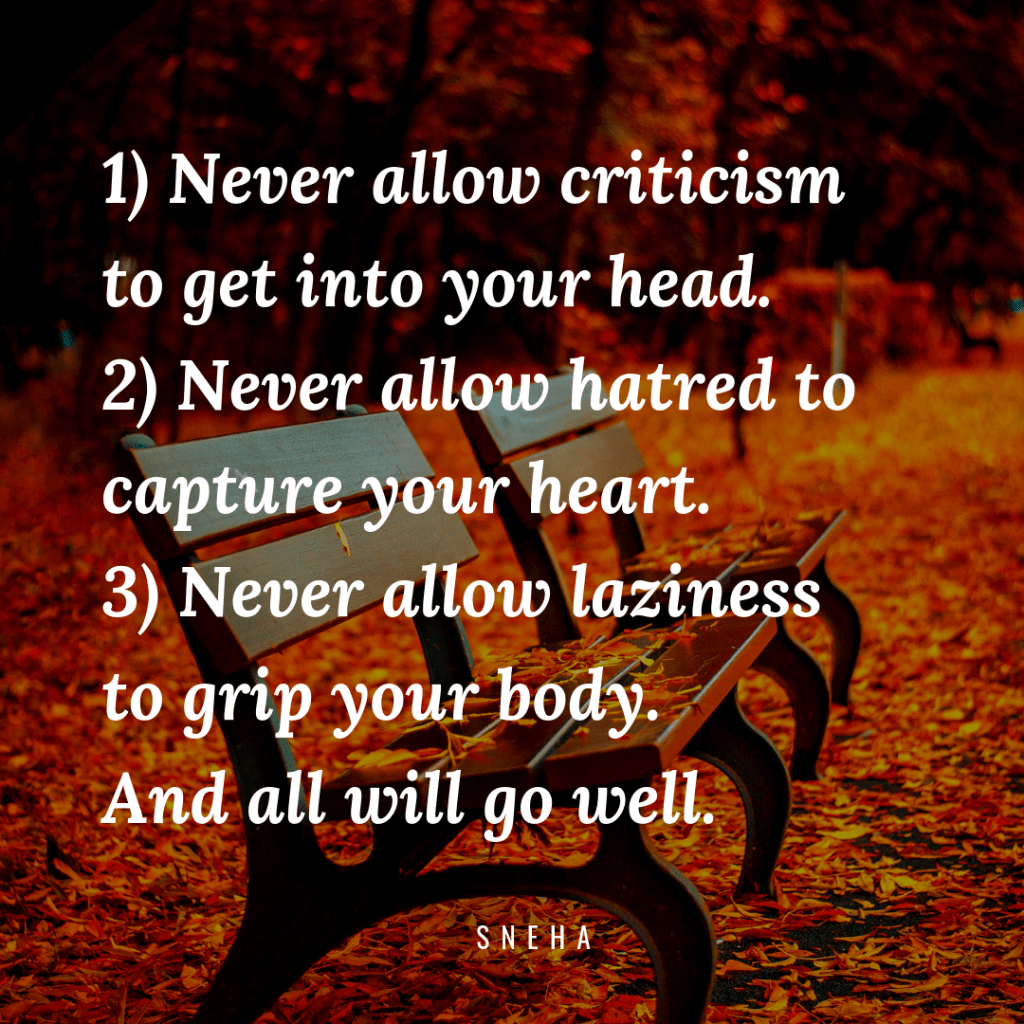 Thus, how we develop into an individual leads to creation of a pool and criticism floats freely on it, ready to stick to you like old leaves do, when you swim in an unattended pond.