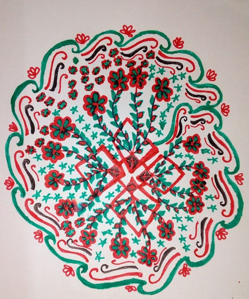 A mandala is an art form which represents the eternal cycle of life, the wheel and there is no way to identify where a mandal begins and where it ends.