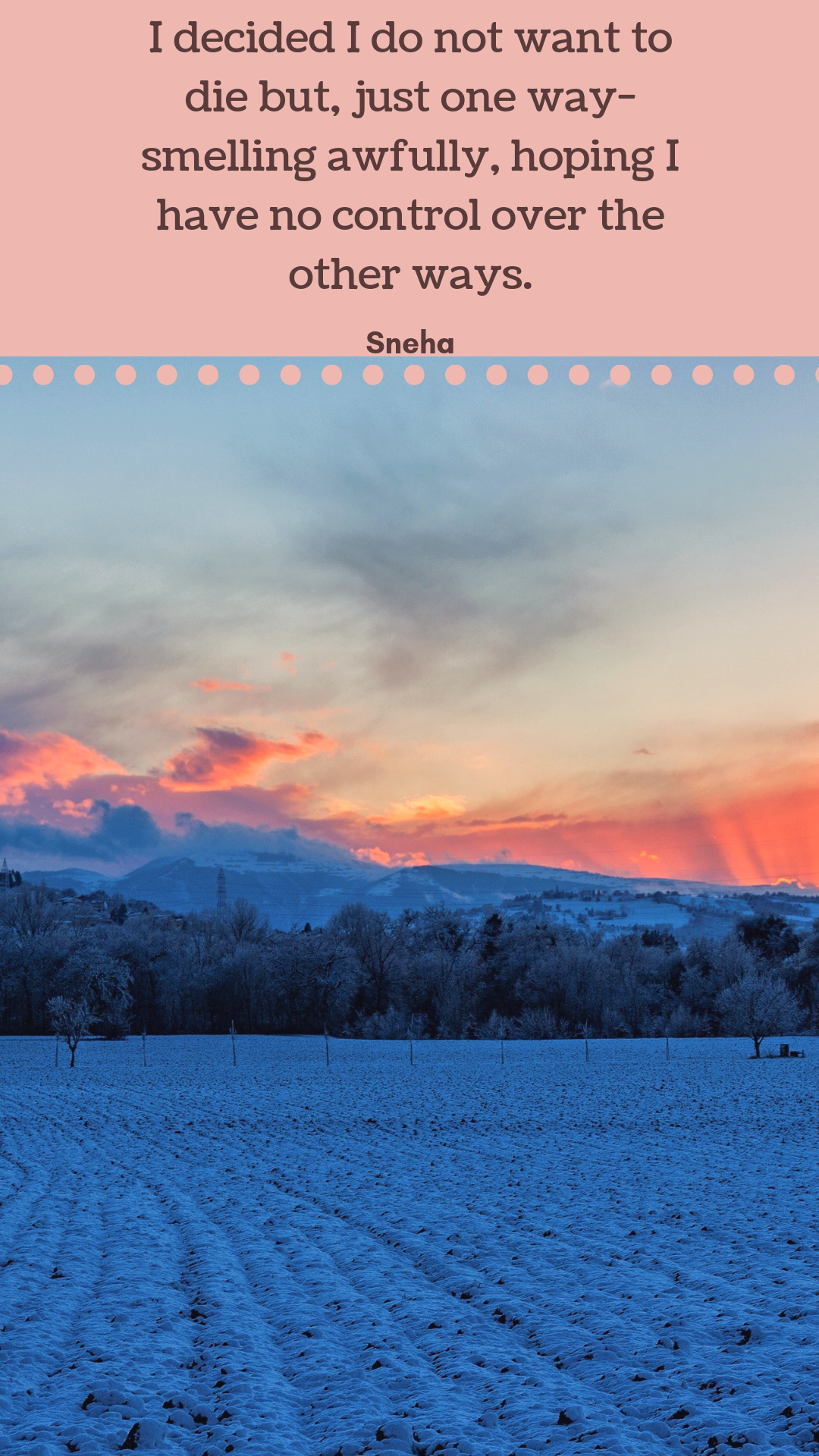 After a lot of thought, I felt maybe smelling awfully is one thing that might still be under my control…other nothing maybe, but who knows even this maybe not.