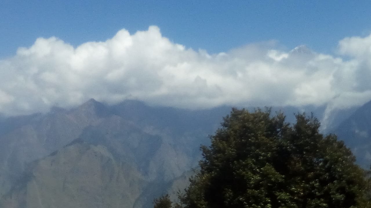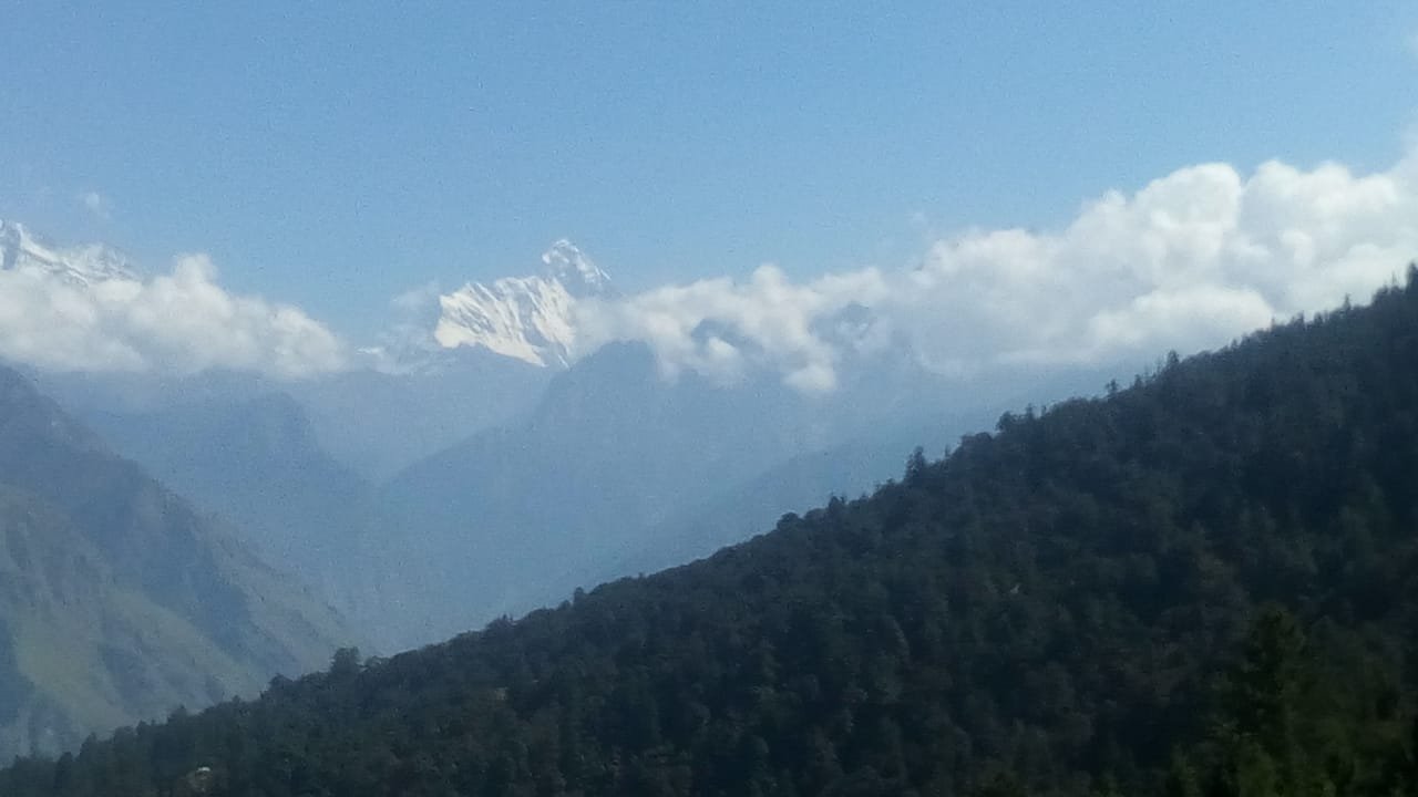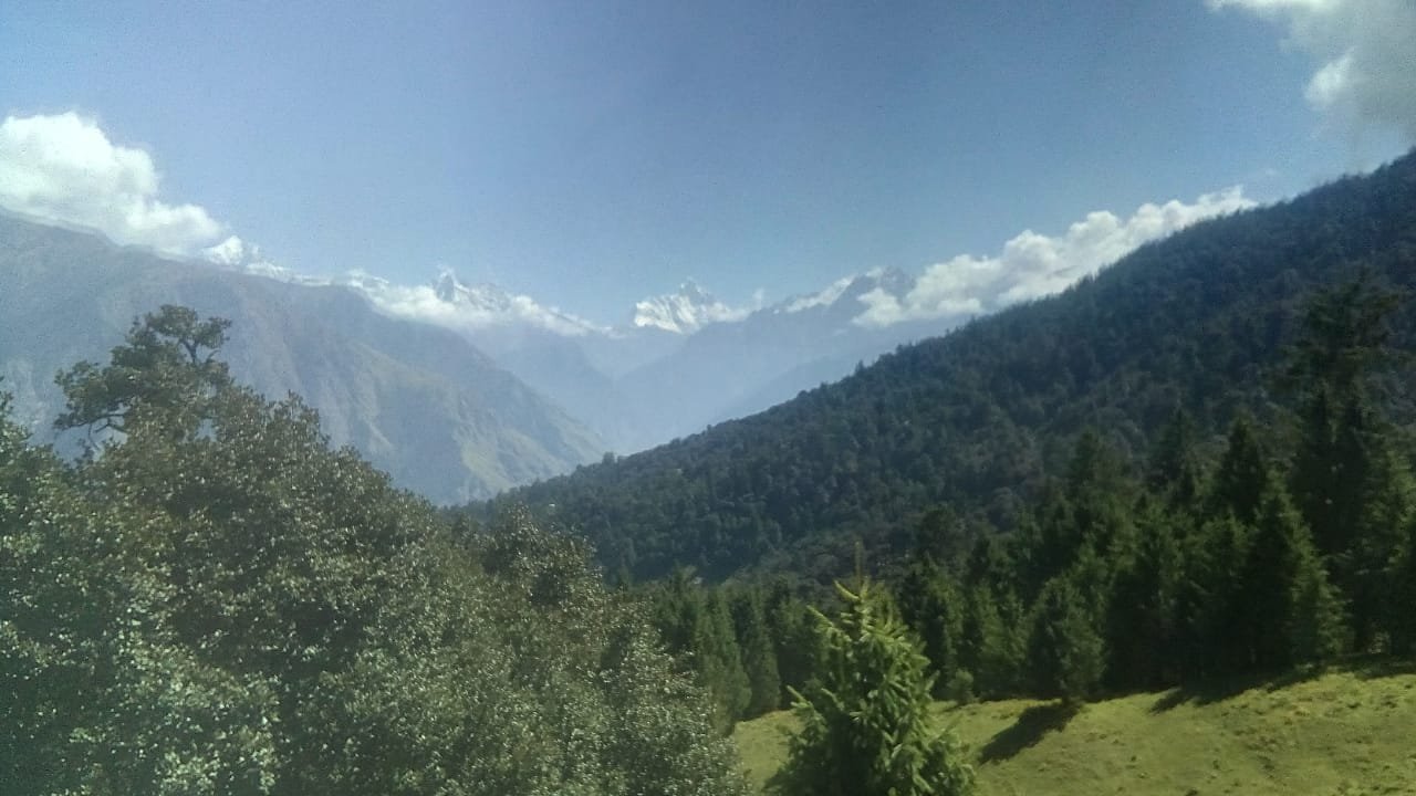 The curve in the mountain at the extreme left end of the first pic is Nanda devi standing tall.